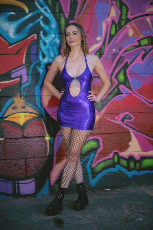 Dance into the night with the UltraViolet Halter Dress! This playful purple dress shines bright with a cute star charm and a stylish halter neckline that flatters every silhouette. Perfect for combining style and comfort.